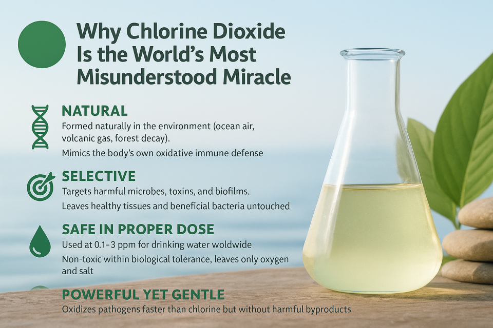 That’s why some researchers call chlorine dioxide a “bio-mimetic oxidizer”—it mimics the way nature purifies itself. It’s not foreign to life; it’s an extension of the same cleansing chemistry that keeps our air fresh, our water pure, and our bodies healthy.